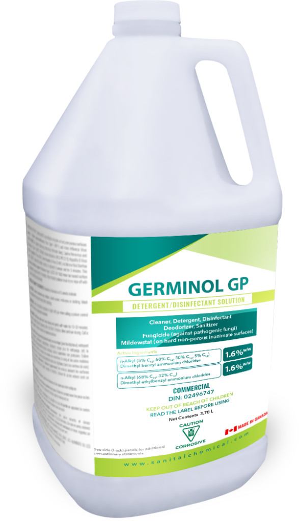 Germinol GP- Detergent/Disinfectant Solution has been designed specifically for hospitals, offices, motels, nursing homes, schools, food processing plants and other institutions where housekeeping is of prime importance.